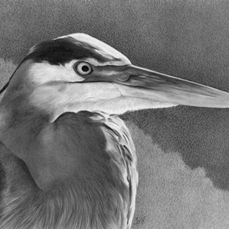 In this two-morning workshop, students will learn and practice essential graphite drawing techniques while creating a realistic drawing of the elegant Great Blue Heron. Guided instruction will cover shading, value, and texture as you work from provided photographic references. All materials are included, and everyone will leave with a completed drawing and a stronger understanding of how to use graphite pencils with confidence.