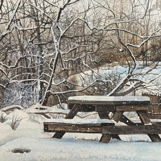 Explore the quiet beauty of winter in this engaging watercolor class. Using peaceful shades of blues and browns, students will experiment with creative techniques such as salt textures and masking fluid to add depth and visual interest. While the subject may be simple, this painting offers many valuable learning opportunities—from layering and texture to contrast and composition. A wonderful way to embrace the calm and beauty of the winter season through art.